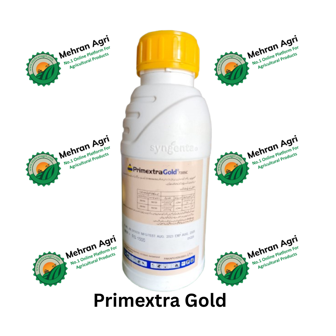 Primextra Gold 720 SC (Syngenta) is a broad-spectrum pre-emergence herbicide specially formulated to control annual grasses and broadleaf weeds in maize and other crops. It works by preventing weed germination and early growth, giving crops a clean and healthy start. With long-lasting soil activity, Primextra Gold reduces competition for nutrients, light, and water, ensuring better crop establishment, healthier plants, and higher yields.